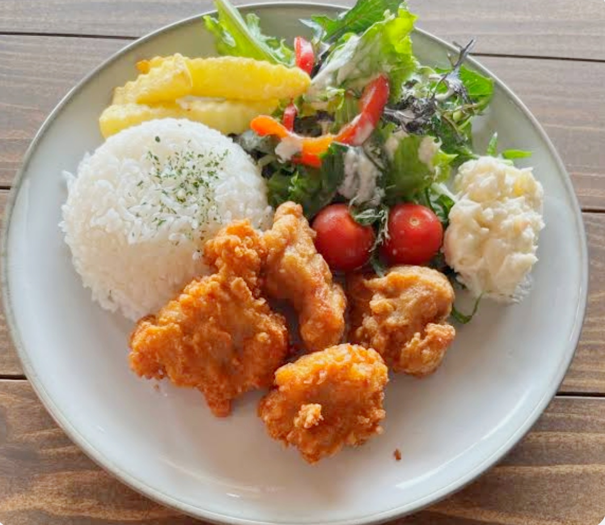 選べるプレート![]() ![]() ¥1200 | 1.からあげ ・唐揚げ3個 ・ごはん ・季節の野菜 ・ポテトサラダ 2.豚の生姜焼き ・豚肉3枚 ・ごはん ・季節の野菜 ・ポテトサラダ | 1. ![]() ![]() 2. ![]() ![]() |