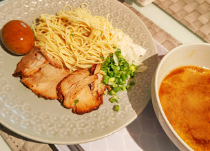 つけ麺![]() ¥1,000 | ・豚のお出汁のスープ × 煮干しベース ・炙りチャーシュー2枚 ・ネギ ・玉ねぎ | ![]() ![]() |